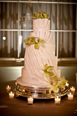 Sharon with Sweet Sensations designed this stunning wedding cake which mimicked the bride's wedding gown